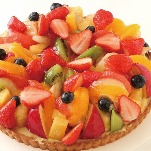 カスタードクリームにフルーツが盛りだくさん!!甘みや風味がしっかり際立つ完熟フルーツを贅沢に使用!香ばしい焼きたてのタルトとフルーツの組み合わせはまさに言葉にできない美味しさです♪